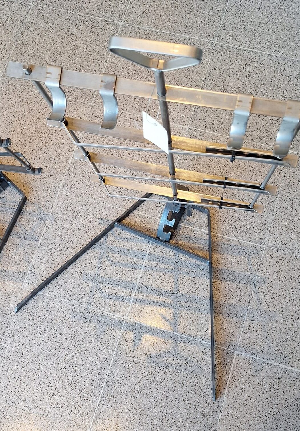 Tiene un pie en forma de “V” y unas medidas de altura de 90 cm y cuerpo de 42 x 57 cm.