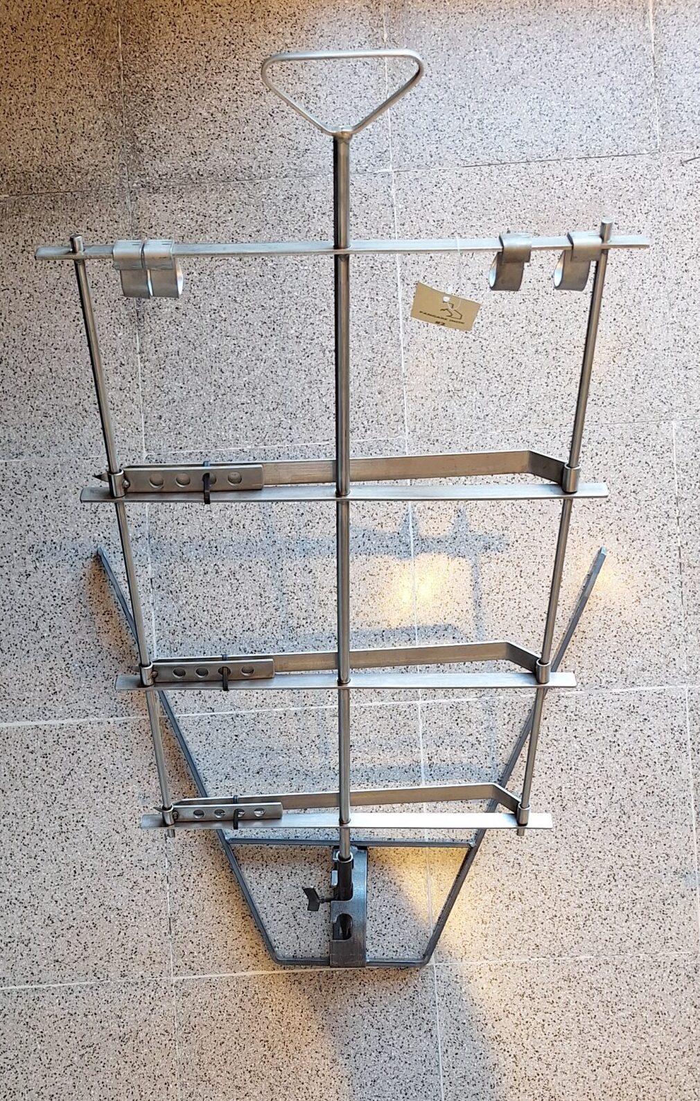 Se cuelga lo que se vaya a cocinar de los ganchos superiores y se ajusta con los brazos inferiores para sujetar sin necesidad de usar alambre.