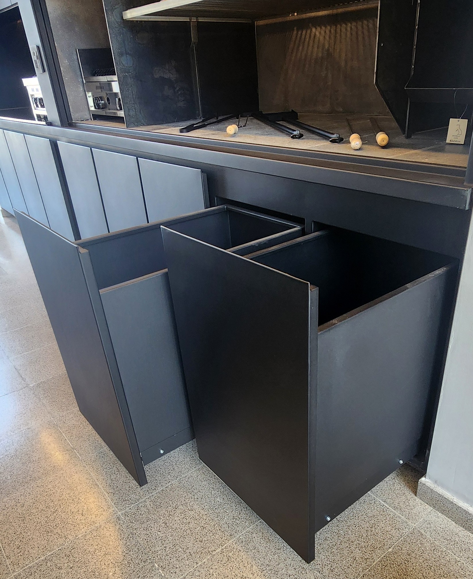 Al ser cajones anchos y sobre correderas, es fácil de abrir y cerrar para poner o retirar leña o carbón.