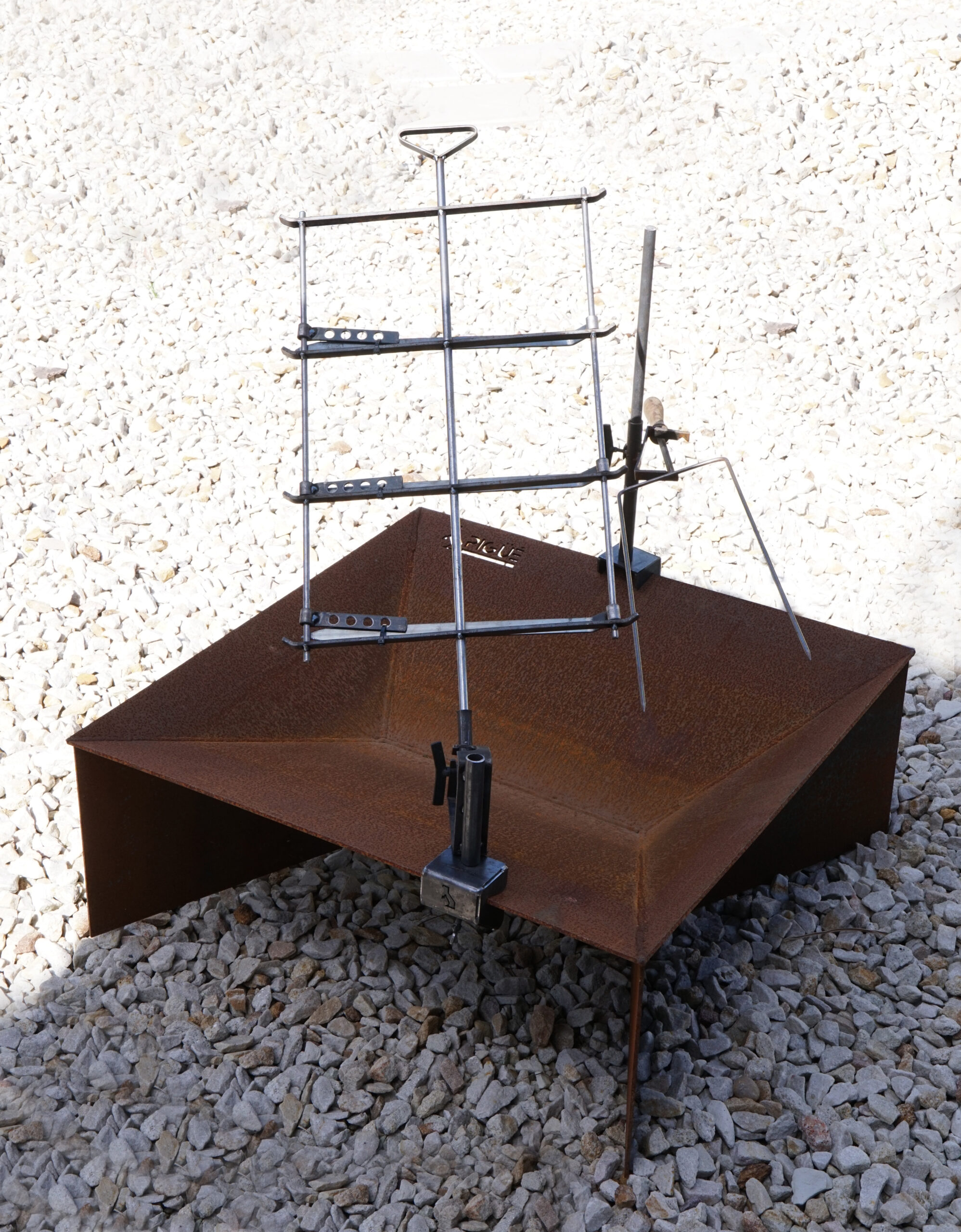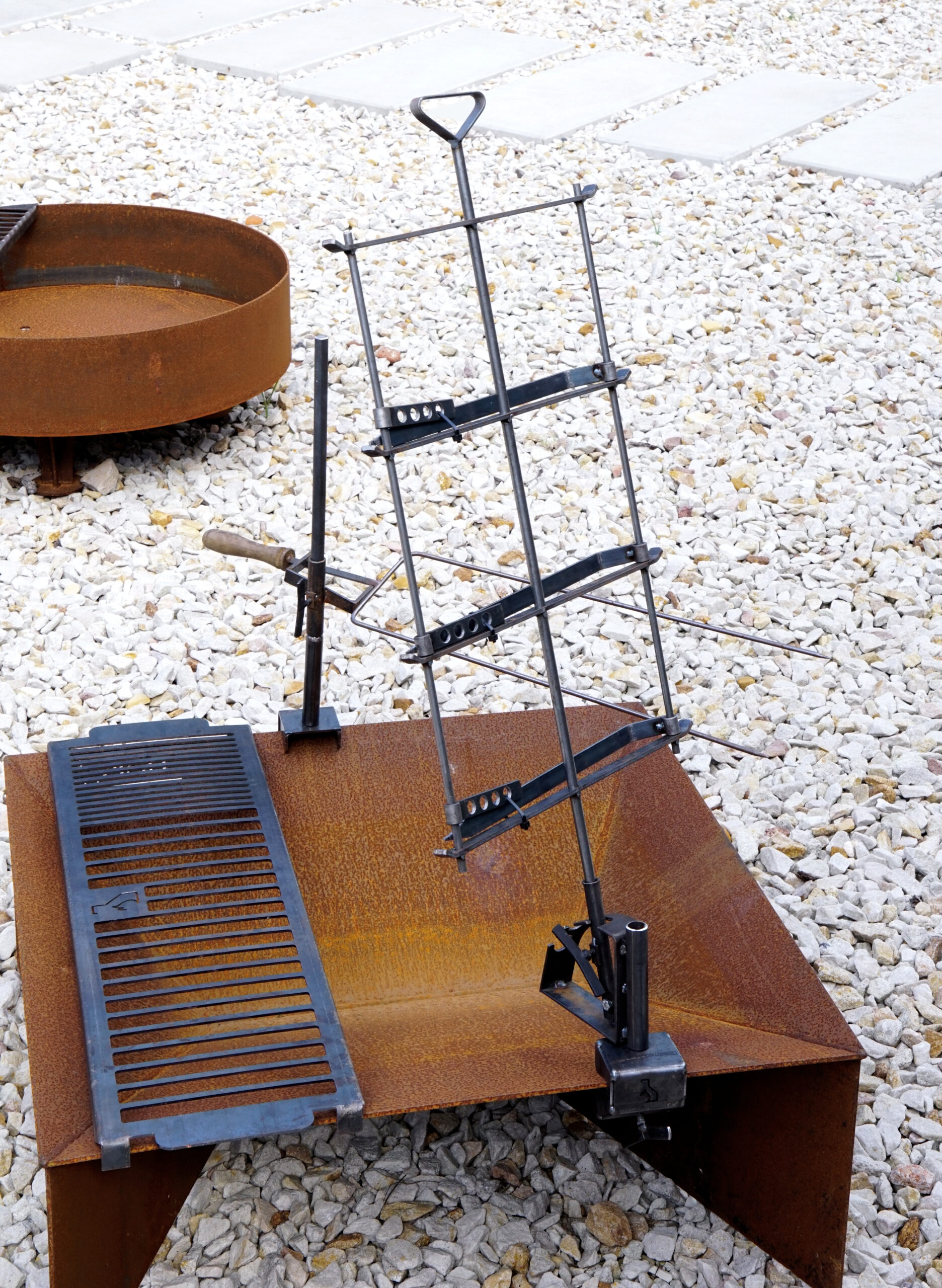 El fogón es un lugar de encuentro. Allí, la cocción de cualquier comida es la excusa para rodearlo y vivir momentos únicos. La búsqueda de representar lo criollo, lo nuestro, nuestros caballos libres en los campos, la hicimos real en este modelo. El Fogón Criollo es de forma cuadrada con cuatro apoyos, diseñado para uso en espacios abiertos como jardines y parques.