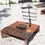 Es un fogón de diseño cuadra con opción de accesorios como asadores y parrillas.