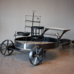 Es un fogón de diseño circular con opción de accesorios como asadores y parrillas.