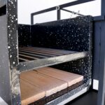 Se coloca al costado de la parrilla rodante, se hace el fuego sobre el enrejado y las brasas que caen se ponen por debajo de la parrilla con una palita.
